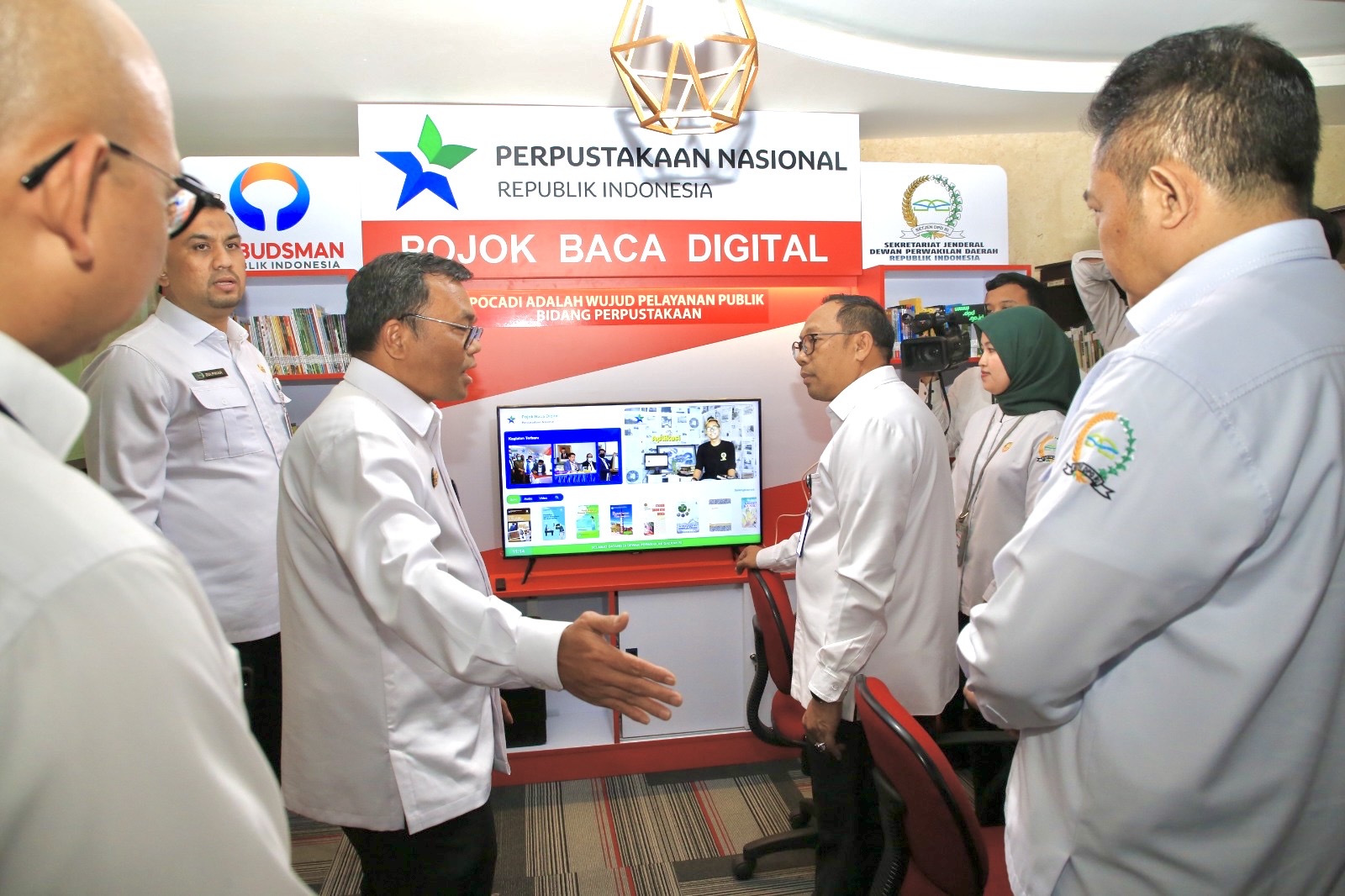 JAKARTA,dpd.go.id – Sekretaris Jenderal (Setjen) DPD RI meluncurkan Pojok Baca Digital (Pocadi) yang dikerjasamakan dengan Perpustakaan Nasional (Perpusnas) yang dilakukan di Lobby Setjen DPD RI (29/04/2024). Keberadaan Pocadi yang ditempatkan di dekat Lobby Kantor Setjen DPD RI ini merupakan upaya dalam menyediakan referensi pengetahuan dan peningkatan literasi bagi masyarakat dan ASN Setjen DPD RI di tengah kuatnya arus informasi seiring perkembangan digital.