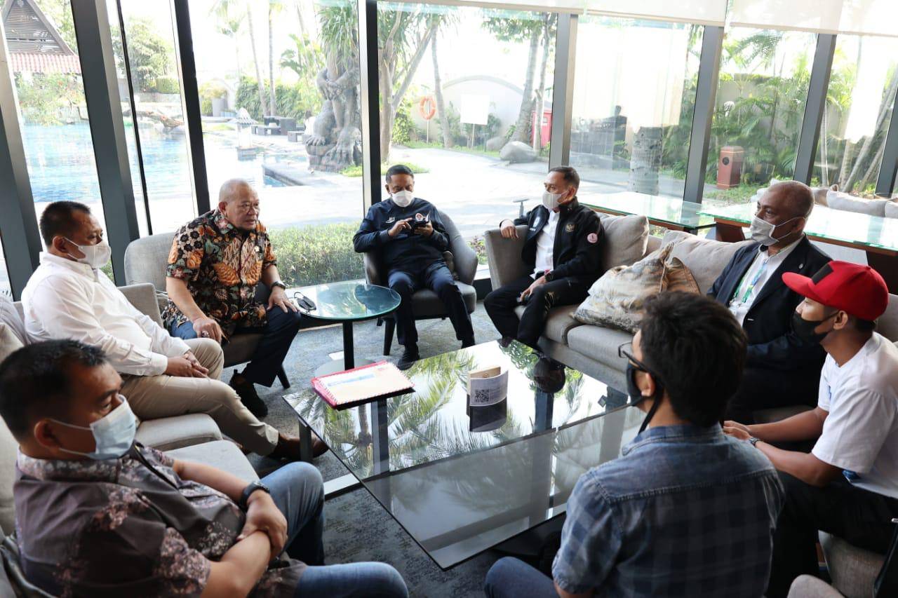Surabaya, dpd.go.id- Ketua DPD RI AA LaNyalla Mahmud Mattalitti didatangi sekelompok suporter sepakbola asal Malang, atau yang dikenal dengan sebutan Aremania. Mereka menyebut diri MMGA atau Make Malang Great Again, Sabtu (27/3/2021) di Hotel Sheraton, Surabaya. Mereka mengadu kepada Ketua DPD RI, agar membantu tuntutan mereka agar tersuarakan kepada semua pihak terkait, tentang harapan untuk membuat Arema kembali menjadi satu. Demikian disampaikan juru bicara MMGA, Andi Sinyo yang datang bersama Ambon Fanda, Vandy Wijaya, Taufan Wibowo dan Yiyesta Ndaru Abadi. Menanggapi itu, LaNyalla segera menghubungi Menpora Zainuddin Amali dan Ketua Umum PSSI Mochamad Iriawan atau yang akrab disapa Iwan Bule, yang kebetulan sedang berada di Hotel Sheraton Surabaya dalam rangka menghadiri Kongres Pemilihan Ketua Asosiasi PSSI Provinsi Jawa Timur. “Saya hanya bisa memfasilitasi. Saya pertemukan langsung kalian dengan Ketua Umum PSSI dan Menpora. Sampaikan saja apa yang menjadi aspirasi dan tuntutan kalian. Tapi ingat, keputusan ada di federasi sepakbola, bukan di saya atau Menpora. Kami berdua hanya menyaksikan dan memfasilitasi,” tandas LaNyalla, yang juga mantan Ketua Umum PSSI itu. Kepada Iwan Bule dan Menpora, dengan disaksikan LaNyalla, mereka menyampaikan bahwa dualisme Arema di Malang, yakni Arema FC dan Arema Indonesia, yang sama-sama disahkan sebagai member oleh PSSI pada KOngres tahun 2017 lalu, membuat benturan Aremania di grass root. “Kondisi ini sudah tidak sehat. Apalagi kedua Arema yang ada sekarang sebenarnya tidak sah, karena Arema yang pertama dan tunggal adalah PS Arema yang tertera dalam Yayasan Arema yang didirikan tahun 1987. Bukan yang sekarang ada,” ungkap Sinyo. Kepada Iwan Bule, mereka menyampaikan tiga tuntutan. Yakni, pertama, meneguhkan Yayasan Arema 11 Agustus 1987. Kedua, hanya ada satu nama PS Arema di sepak bola Indonesia, di PSSI, AFC, FIFA. Satu Arema yang dinaungi kepemilikan Yayasan Arema yang sah di Kementerian Hukum dan HAM Republik Indonesia. Ketiga, meminta agar dibentuk tim gabungan pencari fakta dualisme Arema, untuk mengembalikan segala Hak Yayasan Arema (Slot, PT, Piala, Nama dan Logo) kepada Yayasan Arema. Dan menyertakan nama Aremania sebagai Suporter PS Arema dalam AD/ART Yayasan Arema. Atas tuntutan tersebut, Iwan Bule mengatakan akan mempelajari dan membicara di level Komite Eksekutif PSSI. Mengingat kongres PSSI tahun 2017 telah memutuskan bahwa Arema FC dan Arema Indonesia adalah anggota PSSI. “Kongres itu keputusan tertinggi dalam organisasi, dan sesuai Statuta PSSI yang mengadopsi Statuta FIFA. Jadi tidak bisa Ketua Umum langsung mengambil Tindakan sendiri,” ungkap Iwan Bule. Pertemuan yang difasilitasi LaNyalla, selain dihadiri Menpora dan Ketua Umum PSSI, juga turut serta Ketua Umum PSSI Jawa Timur Ahmad Riyadh dan Anggota Komite Eksekutif PSSI Jatim Wardi Ashari serta Sekretaris PSSI Jatim Amir Burhanuddin. Tampak pula Sekda Provinsi Jawa Timur Heru Tjahyono. (*)