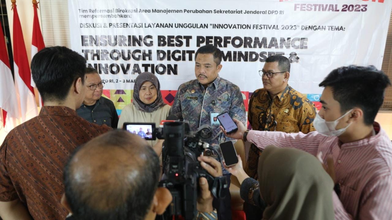 JAKARTA, dpd.go.id - Plh. Sekretaris Jenderal DPD RI Lalu Niqman Zahir mengapresiasi acara Innovation Festival 2023 yang telah berakhir pada hari ini, Jumat (3/3). Menurutnya festival yang telah ditampilkan oleh dari unit-unit Eselon II Setjen DPD RI memberikan inovasi baru sesuai perkembangan zaman.