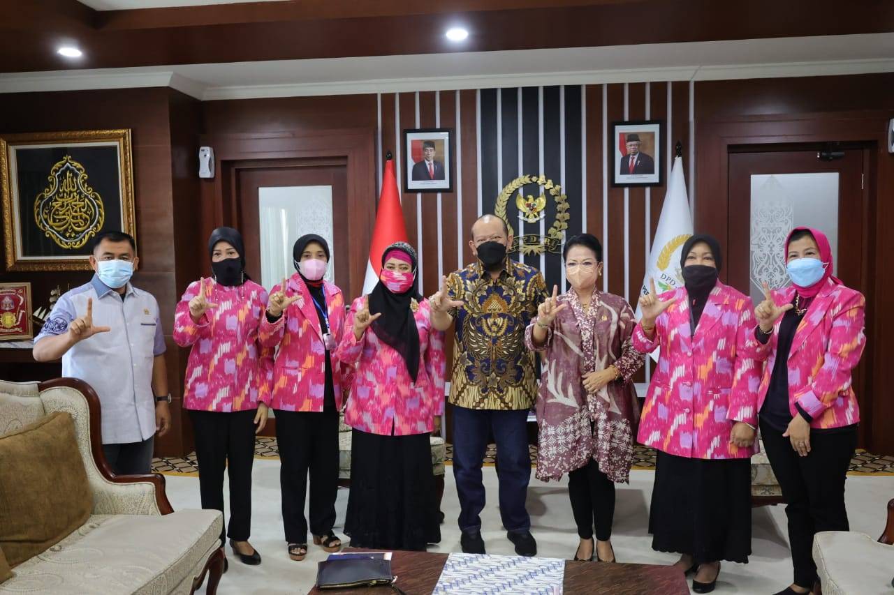 Jakarta, dpd.go.id - Ketua DPD RI, AA LaNyalla Mahmud Mattalitti, mengajak Ikatan Wanita Sulawesi Selatan (IWSS) untuk bersama-sama membangun daerah. Ajakan itu disampaikan LaNyalla saat menerima audiensi IWSS, Selasa (11/5/2021). Audiensi dihadiri Wakil Ketua Umum IWSS Lily Salurapa, Sekjen IWSS Andi Nurhiyari Jamaro, Ketua Dewan Penasehat IWSS Welly Tenkiweling Moein, dan sejumlah anggota lainnya. Wakil Ketua Umum IWSS, Lily Salurapa, menyampaikan audiensi dilakukan untuk bersilaturahmi. "Kita bersyukur Pak Ketua juga berdarah Sulsel meskipun berkiprah di Jatim. IWSS ucapkan selamat ulang tahun. Kita doakan agar semua cita-cita dikabulkan," kata Lily, yang juga senator asal Sulawesi Selatan. Menurutnya, IWSS sudah sejak lama ikut membangun bangsa dengan kegiatan positif. "IWSS sudah berdiri 44 tahun, berada di 27 provinsi. Juga sudah ada perwakilan di Australia, Kanada, Malaysia," katanya. Sekjen IWSS, Andi Nurhiyari Jamaro menjelaskan rencana IWSS akan menggelar Musyawarah Nasional pada 2-4 Juli 2021 di Jakarta. "Kami berharap Pak Ketua DPD bisa hadir dan memberikan sosialisasi 4 pilar. Nanti pesertanya gabungan virtual dan langsung," katanya. Ketua DPD RI, AA LaNyalla Mahmud Mattalitti, menanggapi hal ajakan tersebut. LaNyalla menyatakan siap hadir dan berharap acara Munas berjalan lancar serta terpilih Ketua baru yang lebih baik lagi. "DPD mengajak semua elemen bangsa, termasuk IWSS untuk ikut serta membangun negara, terutama daerah-daerah. Apalagi ibu-ibu ini, para wanita itu powernya sangat besar," ujar LaNyalla.(*)