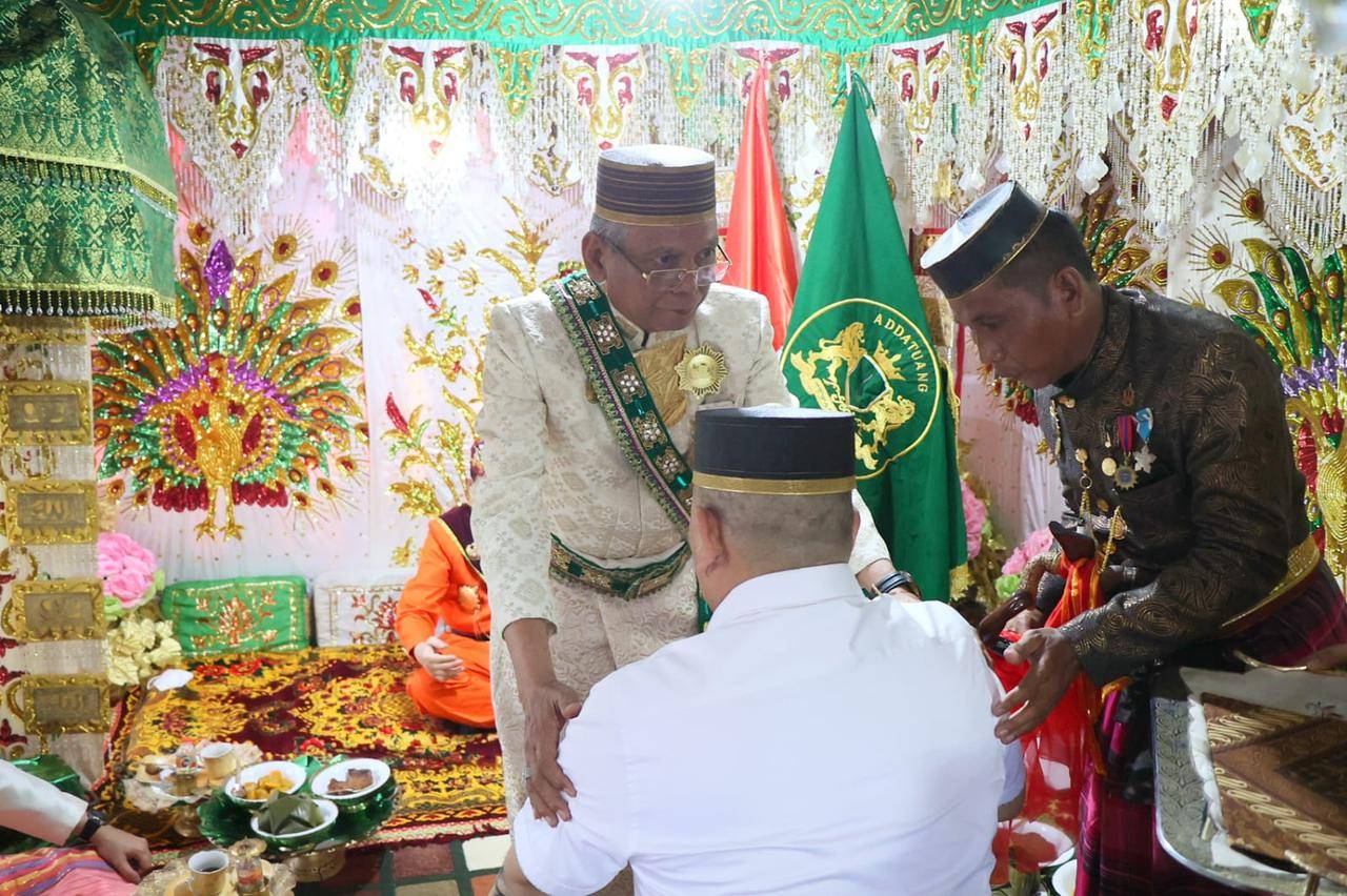 Sidrap, dpd.go.id - Gelar kehormatan dari kerajaan Nusantara kembali disematkan kepada Ketua DPD RI, AA LaNyalla Mahmud Mattalitti. Kali ini, LaNyalla diberikan gelar Petta Punggawae To Mappatunru saat berkunjung ke Addatuang Sidenreng. Penganugerahan gelar dilakukan di Saoraja Wanio Addatuang Sidenreng oleh Addatuang Sidenreng XXV, Achmad Faisal Andi Sapada, Rabu (17/11/2021). LaNyalla yang disambut Tari Padupa dengan iringan gendang khas Sidenreng Rappang, mengikuti prosesi penganugerahan dengan diberikan keris, selempang dan plakat. "Makna filosofis yang terkandung atau arti dari gelar tersebut adalah, LaNyalla dinobatkan sebagai Sang Bangsawan pemimpin yang sejati dan berwibawa," kata Addatuang Sidenreng XXV, Achmad Faisal Andi Sapada. Addatuang Sidenreng XXV berharap anugerah gelar adat tersebut dipelihara dengan sebaik-baiknya. Gelar tersebut menurutnya diberikan karena banyak pertimbangan. "Gelar ini kami berikan kepada bangsawan yang pemberani. Pertimbangannya karena sudah menjadi kebiasaan di Addatuang Sidenreng setiap orang yang berjasa dan bermanfaat bagi Addatuang Sidenreng akan diberikan gelar adat," katanya. Achmad Faisal Andi Sapada menjelaskan, Ketua DPD RI sangat berjasa besar bagi Addatuang Sidenreng. LaNyalla telah memberikan spirit motivasi dan rasa bangga kepada Addatuang Sidenreng untuk terus membina adat di masa datang. "Kepedulian Ketua DPD RI terhadap Kerajaan Nusantara sangat luar biasa. Ketua DPD RI merupakan orang pertama yang berani menyatakan bahwa kerajaan dan kesultanan Nusantara punya andil besar bagi pendirian bangsa. Sehingga perlu mendapat perhatian yang lebih besar oleh pemerintah," tegasnya. LaNyalla menyampaikan ucapan terima kasih atas pemberian gelar tersebut. Senator asal Jawa Timur ini juga siap menjaga amanah dan kepercayaan yang telah diberikan. "Terima kasih saya diberikan kehormatan sebagai keluarga besar Kerajaan Sidenreng. Anugerah gelar ini akan memotivasi saya untuk melanjutkan perjuangan dalam memajukan bangsa, terutama kemajuan kerajaan dan kesultanan Nusantara," katanya. Dijelaskan oleh LaNyalla, keberadaan DPD RI sebagai representasi daerah berperan penting untuk menyuarakan aspirasi dan kepentingan Kerajaan Nusantara yang tersebar di berbagai wilayah NKRI. "DPD RI menyadari Kerajaan Nusantara merupakan pewaris sejarah yang selama berabad-abad telah memberikan sumbangsih besar dalam menjaga marwah bangsa, kemajuan peradaban Nusantara serta menjaga NKRI," ujar dia. Oleh karena itu, LaNyalla berkomitmen akan terus menggugah kesadaran Pemerintah dan bangsa Indonesia agar memberi perhatian kepada keberadaan Kerajaan dan Kesultanan Nusantara. "Makanya saya menyatakan akan memperjuangkan amanat para Raja dan Sultan Nusantara yang diberikan kepada saya dalam Deklarasi Sumedang, yang termaktub dalam 7 Titah Raja dan Sultan Nusantara," paparnya Hadir dalam kesempatan tersebut beberapa senator antara lain Andi M Ihsan (Sulawesi Selatan), Habib Ali Alwi dan Ali Ridho Azhari (Banten), Djafar Alkatiri (Sulawesi Utara), Lili Amelia Salurapa (Sulsel). Selain itu ada juga Sultan Sekala Brak Yang Di Pertuan Ke-23, PYM Sai Batin Puniakan Dalom Beliau (SPDB) Pangeran Edward Syah Pernong, Sekjen DPP Majelis Adat Kesultanan Nusantara (MAKN) DRA Hj Yani WS Koeswodidjoyo dan Ketua Tim Pokja Kerajaan Nusantara Yurisman Star.(*)