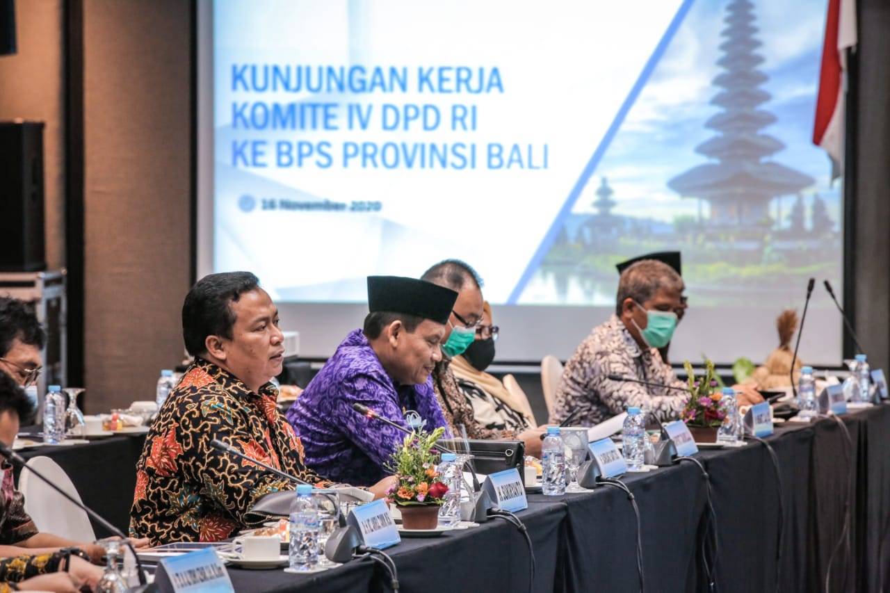 Badung, dpd.go.id- Komite IV Dewan Perwakilan Daerah (DPD RI) mendukung penguatan kelembagaan Badan Pusat Statistik (BPS) melalui Perubahan UU No. 16 tahun 1997 Tentang Statistik. Hal itu tertuang saat Komite IV DPD RI melakukan Kunjungan Kerja (Kunker) di Provinsi Bali dalam rangka Pengawasan Pelaksanaan UU No. 16 Tahun 1997 Tentang Statistik. Ketua Komite IV DPD RI Sukiryanto mengatakan Kunker di BPS Provinsi Bali dalam rangka Pengawasan UU No. 16 Tahun 1997 Tentang Statistik ini menjadi kesempatan untuk saling mengisi dan memberi informasi, antara DPD RI dan BPS, serta dalam rangka memperkuat kelembagaan masing-masing. “Kami berharap ada ketegasan dari BPS kepada perusahaan-perusahaan yang tidak mau di data oleh BPS. Instrumen UU Statistik harus digunakan,” ucapnya di Provinsi Bali, Senin (16/11). Senada dengan Ketua Komite IV Sukiryanto, Anggota Komite IV DPD RI M. Nuh menegaskan satu data Indonesia harus diperkuat. “Kemudian terkait UU No. 16 Tahun 1997 Tentang Statistik saat ini sudah 23 tahun, kalau memang diperlukan ayo bersama-sama kita dorong untuk dilakukan perubahan,” tegasnya. Anggota Komite IV DPD RI Amirul Tamim menyingung Sensus Penduduk 2020. Ia berpendapat bahwa beberapa data Dukcapil dan data lapangan tidak sinkron. “Jangan sampai data tidak akurat sehingga terjadi kesimpangsiuran data. Kita juga perlu melihat dari BPS, apakah bisa dukungan APBD bisa dimaksimalkan dalam mendukung program satu data ini,” tuturnya. Selain itu, Anggota Komite IV DPD RI Ajbar Abdul Kadir mengapresiasi atas langkah BPS dengan dengan menggunakan metode kombinasi dalam Sensus Penduduk 2020. Harapannya kedepan hasil sensus menjadi data yang bisa diandalkan. “Harapan ke depan, data BPS menjadi pusat rujukan dari berbagai kebijakan. Karena harusnya tidak ada istilah data de facto dan de jure, tetapi data de facto dan de jure sama,” katanya. Ia juga berharap ke depan agar DPD RI, DPR RI dan semua pihak memberikan dukungan kepada BPS dalam merealisasikan satu data Indonesia. “Kalau mau data akurat, sebenarnya dengan melibatkan desa/kelurahan, harusnya selesai,” jelas Ajbar. Di kesempatan yang sama, Anggota Komite IV DPD RI Haripinto Tanuwidjaja mengungkapkan sensus penduduk dilaksanakan setiap 10 tahun sekali. Padahal menurutnya butuh data yang selalu update. “Bagaimana cara supaya data ter-update bagus dan rentang waktu tidak lama? Data yang banyak masalah di Batam, daerah perkotaan, kelurahan. Kalau di desa sudah cukup bagus,” jelasnya. Anggota Komite IV DPD RI Asep Hidayat menambahkan permasalahan data penduduk juga menjadi perhatian bersama, sehingga menimbulkan kesemrawutan dalam berbagai program bantuan pemerintah. “Harapannya pemutakhiran data betul-betul dapat dilaksanakan,” ungkapnya. Menanggapi hal yang sama, Anggota Komite IV DPD RI Asep Hidayat Bambang Santoso mengungkapkan dirinya senang bahwa data ini menjadi acuan dan pijakan dasar dalam pengambilan kebijakan. Karena tumpang tindih data masih terjadi sehingga menimbulkan ketidaksinkronan dalam pembagian bantuan sosial oleh pemerintah. “Pendataan dari analog ke digital harusnya sudah sangat membantu. Kami, DPD berkomitmen untuk memperkuat kelembagaan BPS,” terangnya. Kemudian, Anggota Komite IV DPD RI Misharti mengapresiasi atas kinerja BPS yang telah melakukan tugas pendataan di tengah pandemi Covid-19. BPS menjadi perhatian khusus bagi Komite IV DPD RI dan harapan kami agar data tidak tumpang tindih di lapangan, sehingga data menjadi hal yang urgent untuk diperhatikan. “Hal ini dapat tercapai jika ada sinergitas antara BPS dan instansi-instansi terkait,” ujarnya. Menanggapi pernyataan dan pertanyaan Komite IV DPD RI, Sestama BPS Pusat Margo Yuwono mengatakan Sensus Penduduk 2020 merupakan amanat UU No.16 Tahun 1997 Tentang Statistik. Di Indonesia, sensus penduduk ini dilakukan tiap 10 tahun sekali, tetapi ada negara yang finansialnya baik mengadakan 3 tahun sekali. “Langkah awal BPS sesuai harapan Presiden, dimulai dengan Sensus Penduduk 2020 dengan berkoordinasi dengan Dukcapil, serta menggunakan metode kombinasi. Kami juga berharap agar data antar K/L terintegrasi dengan baik. Respon terhadap Sensus Penduduk2020 secara online paling tinggi di Bali adalah Kabupaten Gianyar yakni hampir 60 persen,” kata Margo. (*)