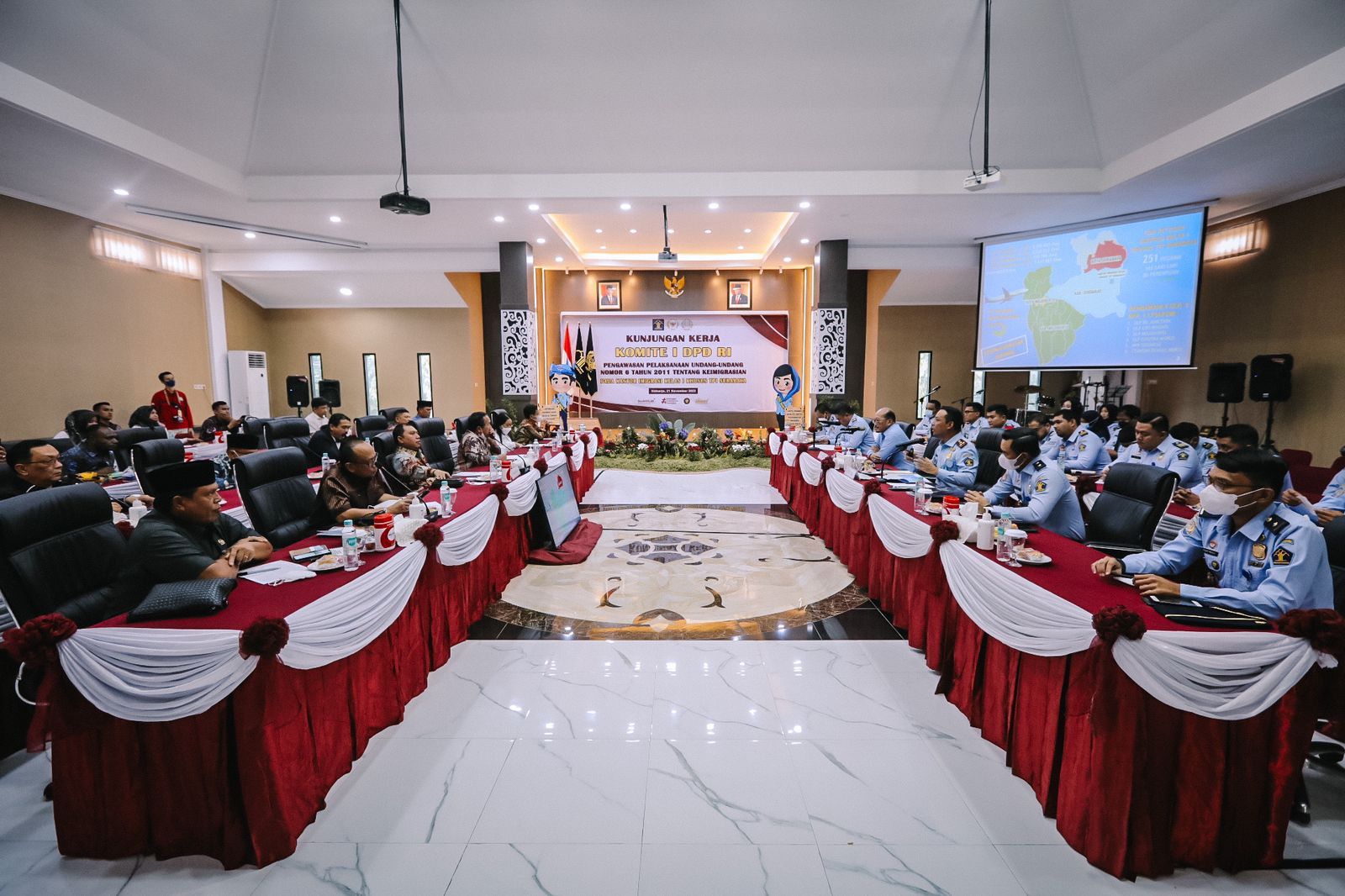 Kunjungan Kerja Komite I DPD RI ke Kantor Imigrasi Kelas I Khusus Surabaya (21/11) diterima oleh Kepala Divisi Keimigrasian Kanwil Kemenkumham Jatim, Hendro Tri Prasetyo dan Kepala Kantor Imigrasi Kelas I Khusus TPI Surabaya, Chicco A. Muttaqin. Pertemuan dipimpin oleh Wakil Ketua I Komite I DPD RI Dr. H. Pangeran Syarif Abdurrahman Bahasyim, SE., MM., bersama Wakil Ketua II Ir. H. Darmansyah Husein. serta dihadiri Anggota Komite I DPD RI yaitu H. Abu Bakar Bahmid, Lc., Dr. H. Ajiep Padindang, SE., ME., TGH. Ibnu Halil, S.Ag., M.Pd.I, Dr. Shri I.G.N Arya Wedakarna MWS, SE. (M.TRU), M.Si., Prof. Dr. H. Dailami Firdaus, SH., LL.M., Fernando Sinaga, S.Th., Ajbar, Husain Alting Sjah, SE., MM, Maria Goreti, S.Sos., M.Si., H. Ahmad Kanedy, SH., MH., AA Oni Suwarman, dan Otopianus P. Tebai. Selain itu, dari jajaran Imigrasi, hadir Kepala Divisi Keimigrasian Kanwil Kemenkumham Jatim, Hendro Tri Prasetyo, Kepala Kantor Imigrasi Kelas I Khusus TPI Surabaya, Chicco A. Muttaqin beserta jajarannya. Kunjungan didahului dengan tinjauan lapangan oleh para Anggota DPD RI di ruang pelayanan dokumen keimigrasian pada pukul 10:00 WIB dan dilanjutkan dengan paparan serta diskusi hingga selesai pukul 12:30 WIB.(*)