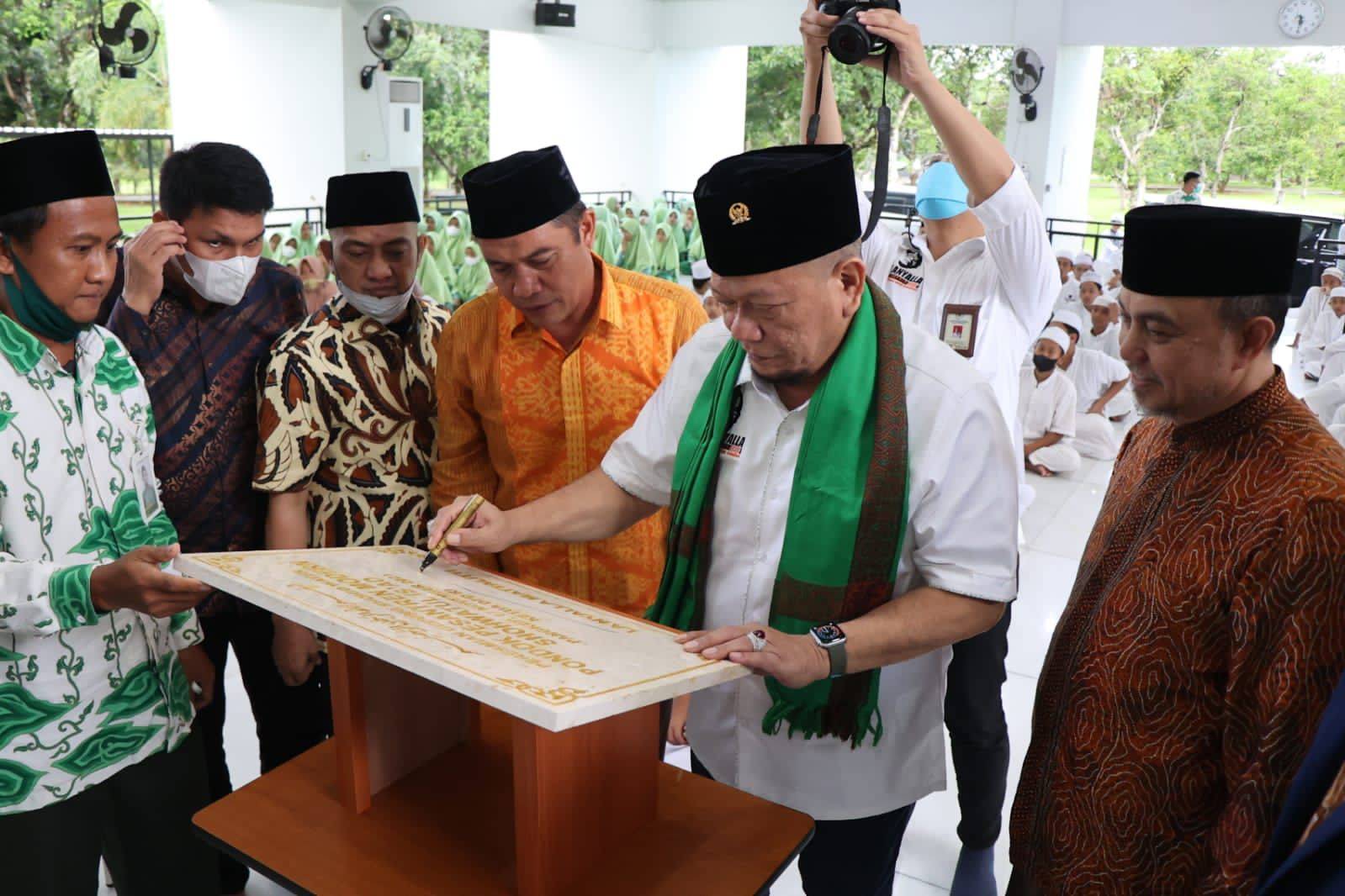Pangkep, dpd.go.id - Ketua DPD RI, AA LaNyalla Mahmud Mattalitti, mengisi kunjungan kerja di Sulawesi Selatan dengan mengunjungi dua pondok pesantren di Pangkep, Sulawesi Selatan, Rabu (17/11/2021). LaNyalla memberikan motivasi di dua tempat itu. Dua pondok pesantren yang dikunjungi LaNyalla adalah Pondok Pesantren Modern Insan Cendekia Madani di Mandalle, Marang, Pangkep, yang dipimpin Tamsil Linrung, senator asal Sulsel. Dan Pondok Pesantren Modern Islam Shohwatul Is'ad pimpinan H Masrur Makmur La Tanro di Padang Lampe, Marang, Pangkep. Di kedua pontren itu, LaNyalla meminta para santri agar menuntut ilmu sebanyak-banyaknya. "Ilmu itu akan menjaga kita. Dengan ilmu kita juga bisa mendapatkan harta. Apalagi ilmu yang kita punya kemudian kita amalkan, ilmu akan bertambah dan memberi manfaat. Bukankah orang yang paling baik adalah orang yang bermanfaat? Itulah kita semua bisa memberikan manfaat dengan ilmu yang kita miliki," kata LaNyalla. Di Ponpes Insan Cendekia Madani, LaNyalla juga sempat bertemu Ustadz Dasa'ad Latief yang saat itu memberikan hikmah Maulid. Sementara itu di ponpes Shohwatul Is'ad, Ketua DPD yang ber-background pengusaha didaulat untuk berbagi ilmu suksesnya sebagai entrepreneur. Menurut LaNyalla kunci sukses dalam berbisnis selain bekerja keras juga perlu selalu jujur dan menjaga komitmen. "Kita harus menjadi orang jujur. Terutama jujur pada diri sendiri. Artinya dilihat atau tidak dilihat orang, kita harus pegang kebenaran," ucap LaNyalla. "Sedangkan komitmen diperlukan karena dengan komitmen itu kita dipercaya orang. Apapun profesi kita, harus senantiasa pegang komitmen," tuturnya. Ditambahkan LaNyalla, kekuatan sedekah juga menjadi faktor juga dalam menggapai kesuksesan. "Kakek dan orangtua saya selalu mengajarkan saya untuk menyisihkan rezeki 2,5 persen. Setelah terkumpul kemudian diberikan ke anak yatim dan fakir miskin. Pelajaran itu saya lakukan sekarang. Kita harus beramal, tentunya dengan keikhlasan," ucap dia. Dalam kesempatan tersebut, Ketua DPD juga didaulat untuk menandatangi prasasti dua aset milik PPMI Shohwatul Is'ad, yaitu peresmian Masjid Buq'atul Ilmi dan Gedung Shohib Water, yang memproduksi air minum kesehatan. Beberapa senator turut mendampingi LaNyalla dalam kunjungan antara lain Andi M Ihsan dan Lily Amelia Salurapa (Sulawesi Selatan), Habib Ali Alwi dan Ali Ridho Azhari (Banten) serta Djafar Alkatiri (Sulawesi Utara).(*)
