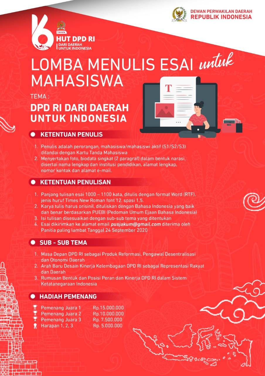 DPD RI Jelang Ulang Tahun, Gelar Lomba Esay Mahasiswa