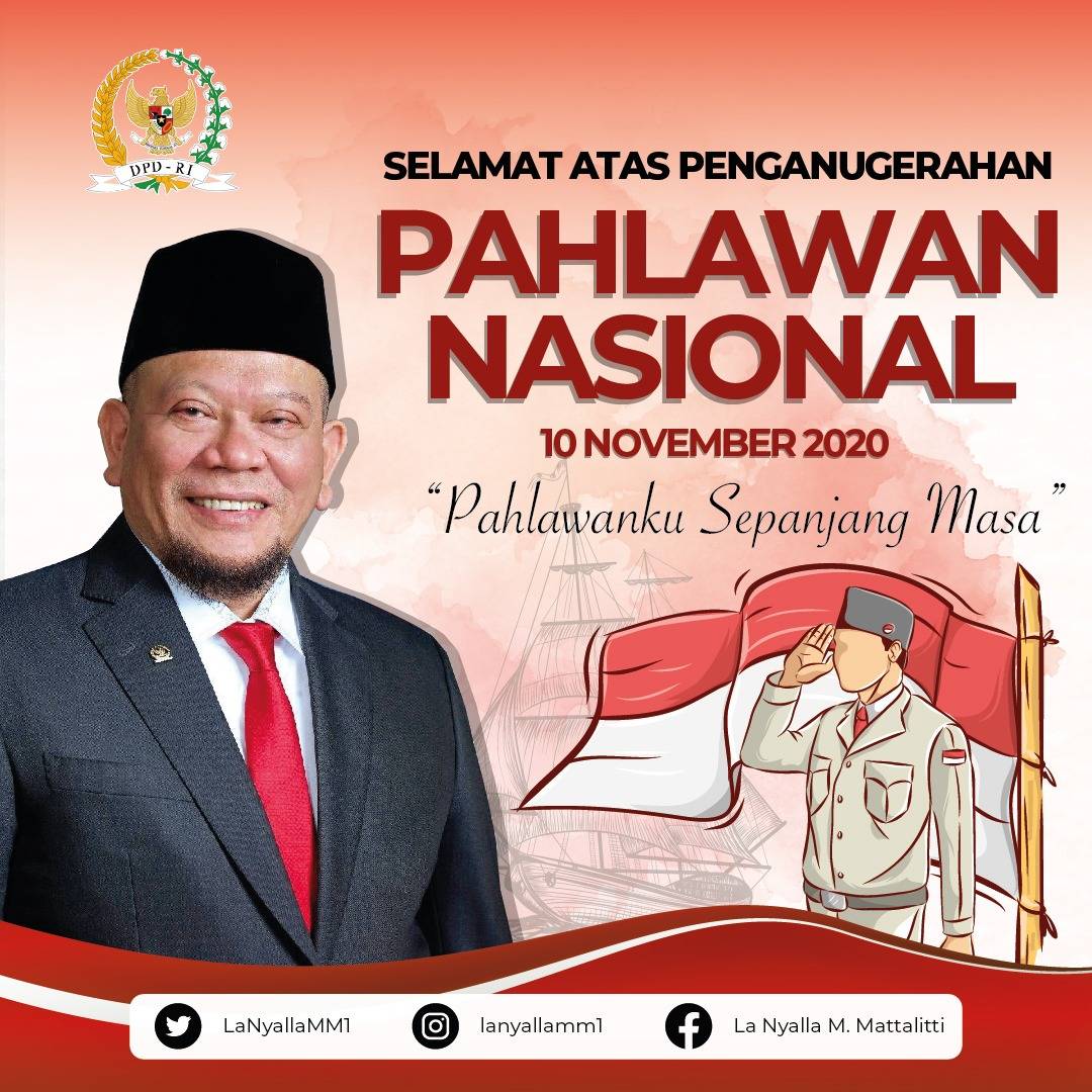 Jakarta, dpd.go.id -Memaknai hari pahlawan di tengah Pandemi Covid-19, Ketua DPD RI AA LaNyalla Mahmud Mattalitti mengajak masyarakat memberikan apresiasi...