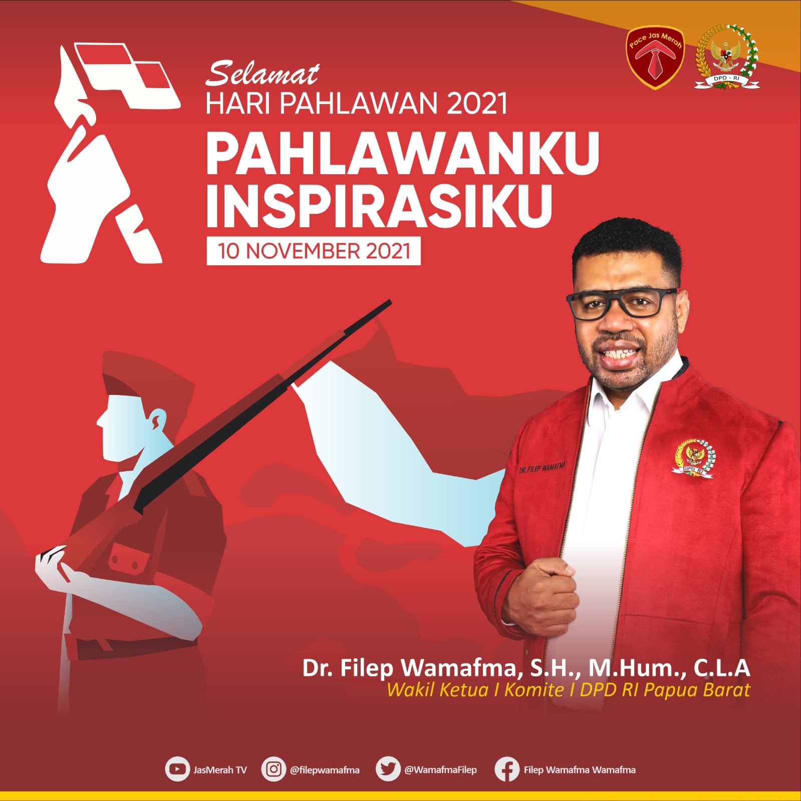 "Selamat Hari Pahlawan Nasional" 10 November 2021  "Pahlawanku Inspirasiku" Dr. Filep Wamafma, S.H., M.Hum., C.LA. Wakil Ketua Komite I DPD...