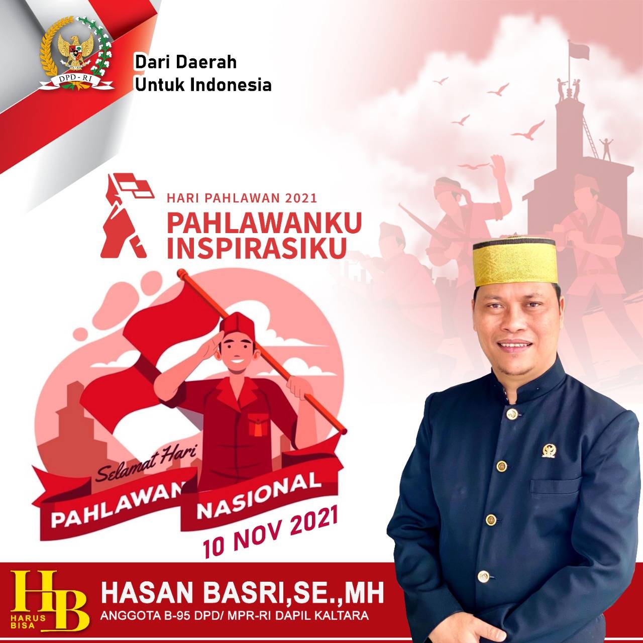 Selamat Hari Pahlawan. Hidup Indonesiaku Terima kasih Pahlawanku Hasan Basri, S.E., M.H. (Anggota B-95 DPD RI Dapil Kaltara)