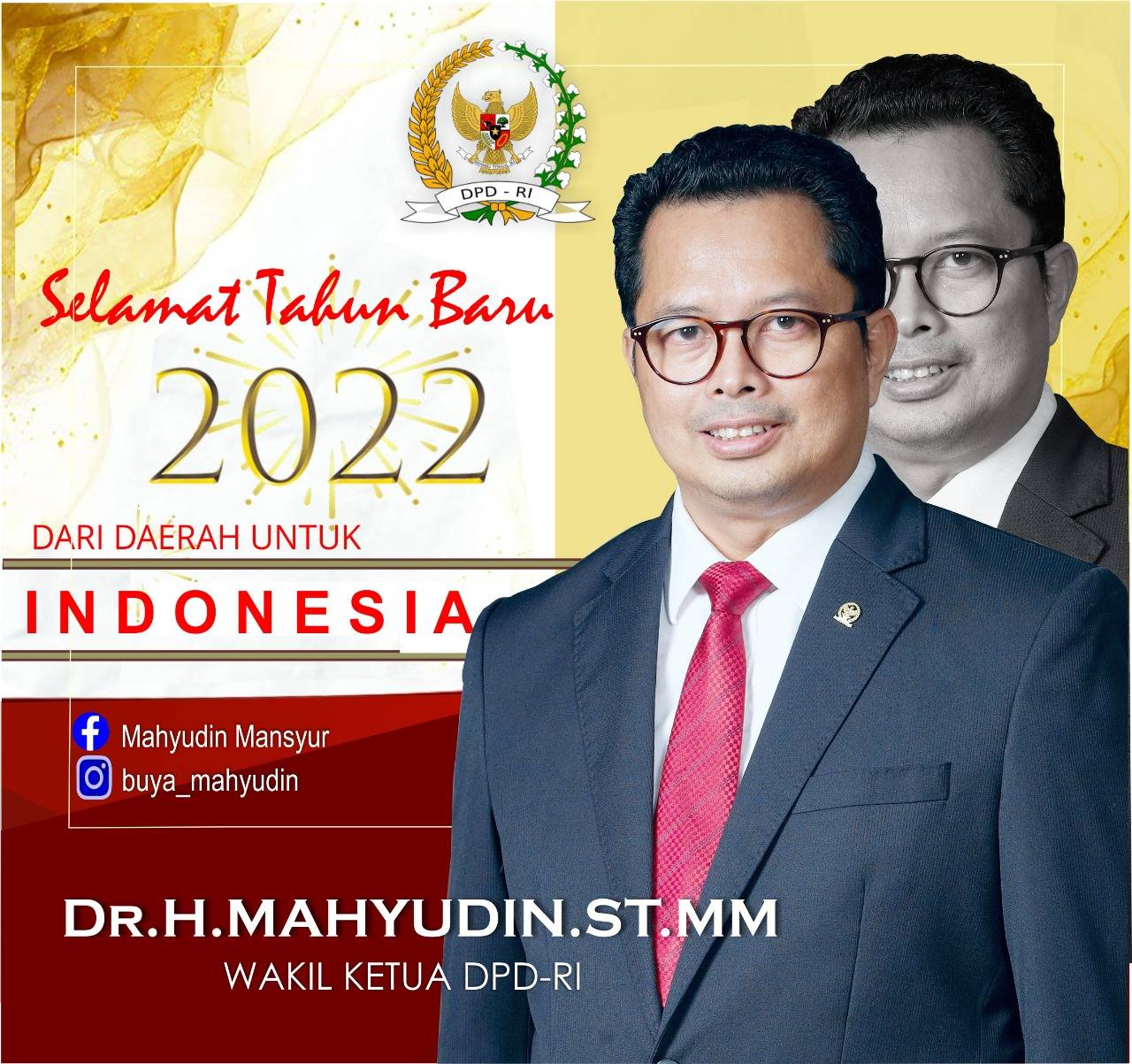 Dari Daerah Untuk Indonesia. Selamat Tahun Baru 1 Januari 2022 -Tahun Baru -Harapan Baru -Indonesia Maju Dr.H.Mahyudin.ST.MM Wakil Ketua DPD-RI...
