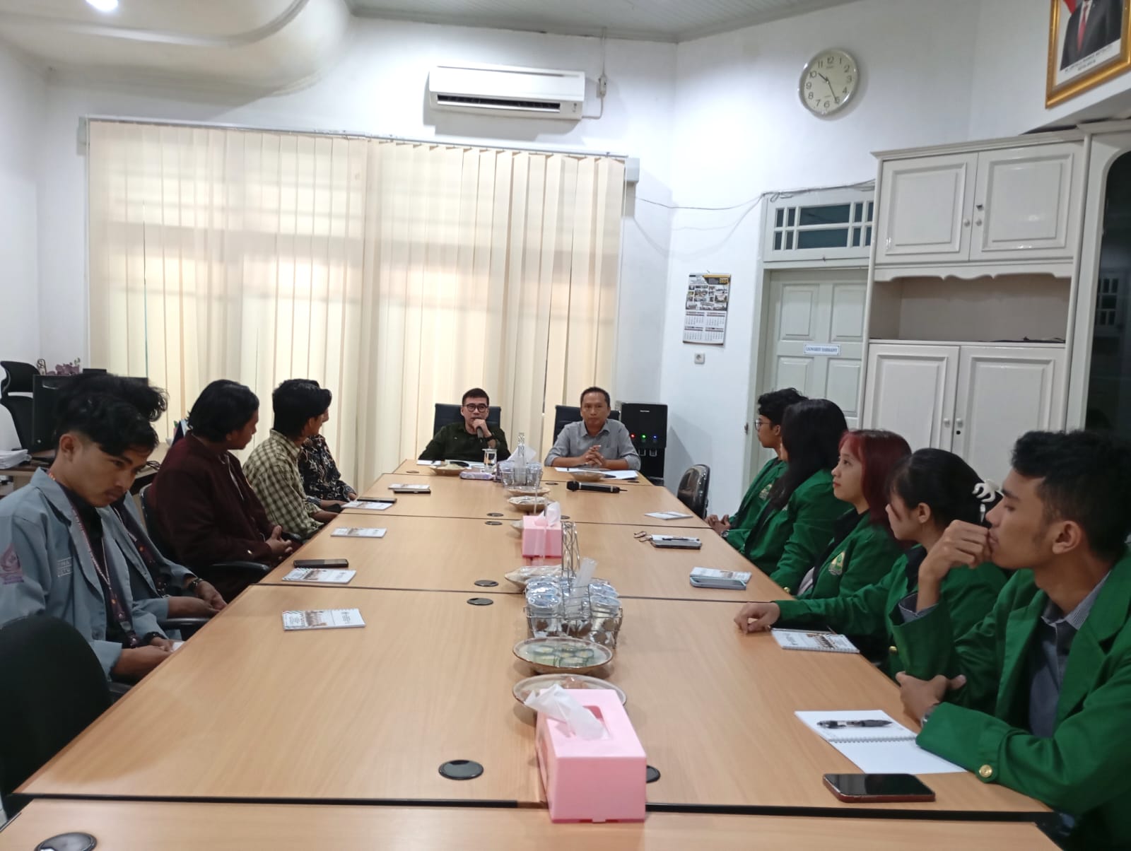 Anggota DPD RI, Dr. H. Alirman Sori, SH.,MM.,MHum yang didampingi oleh Kepala Subbagian Perencanaan dan Keuangan Kantor DPD RI, Andri Matovani menerima perwakilan mahasiswa dari Universitas Andalas, Universitas Negeri Padang dan Universitas Islam Negeri Imam Bonjol dalam rangka mendengarkan pandangan Mahasiswa terkait kondisi politik dan kekinian bangsa yang difokuskan kepada pelaksanaan Pemilu Serentak 2024 dan pelaksanaan Undang-Undang No 7 Tahun 2017 tentang PEMILU bertempat di Kantor DPD RI di Provinsi Sumatera Barat di Jalan Barito Nomor 9 Kelurahan Rimbo Kaluang, Padang (28/04/2024).