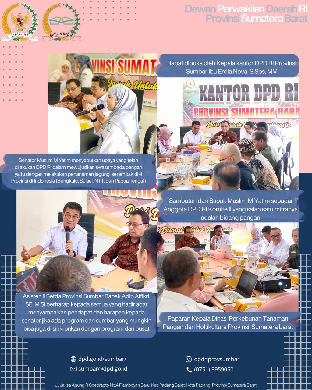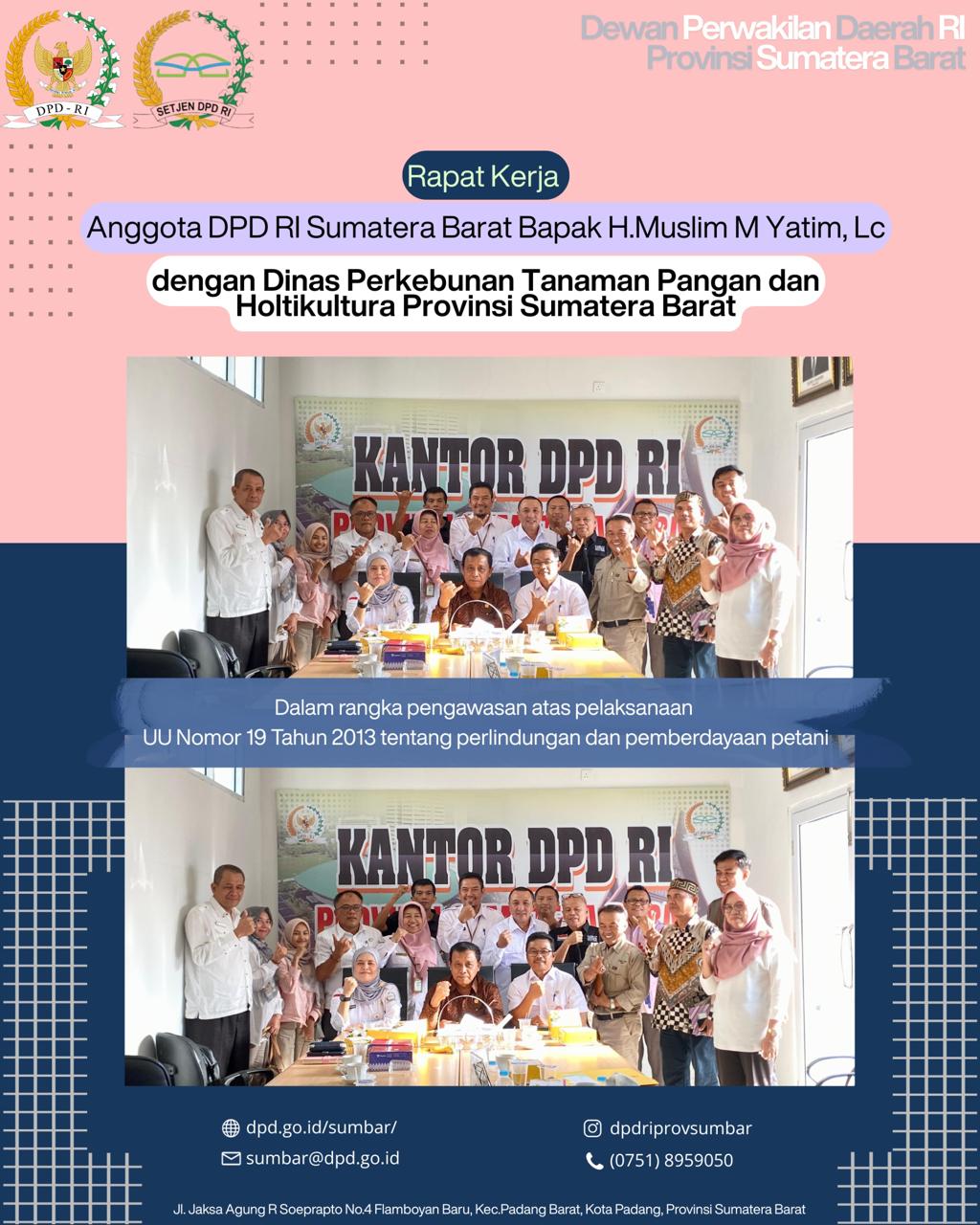 Anggota DPD RI Provinsi Sumatera Barat Bapak H. Muslim Yatim, Lc melaksanakan Rapat Kerja bersama Dinas Perkebunan Tanaman Pangan dan Holtikultura Provinsi Sumatera Barat pada tanggal 15 Oktober 2025