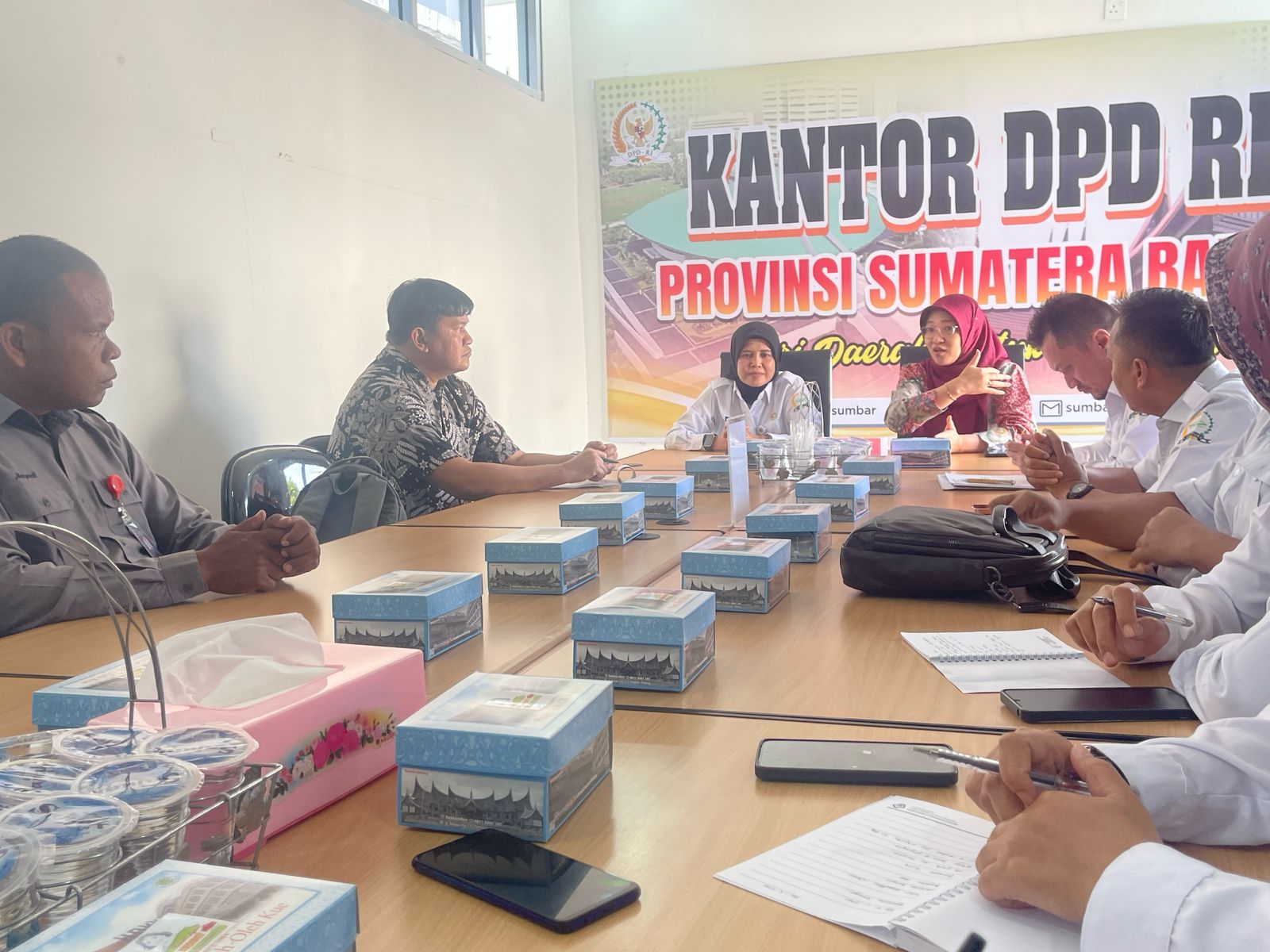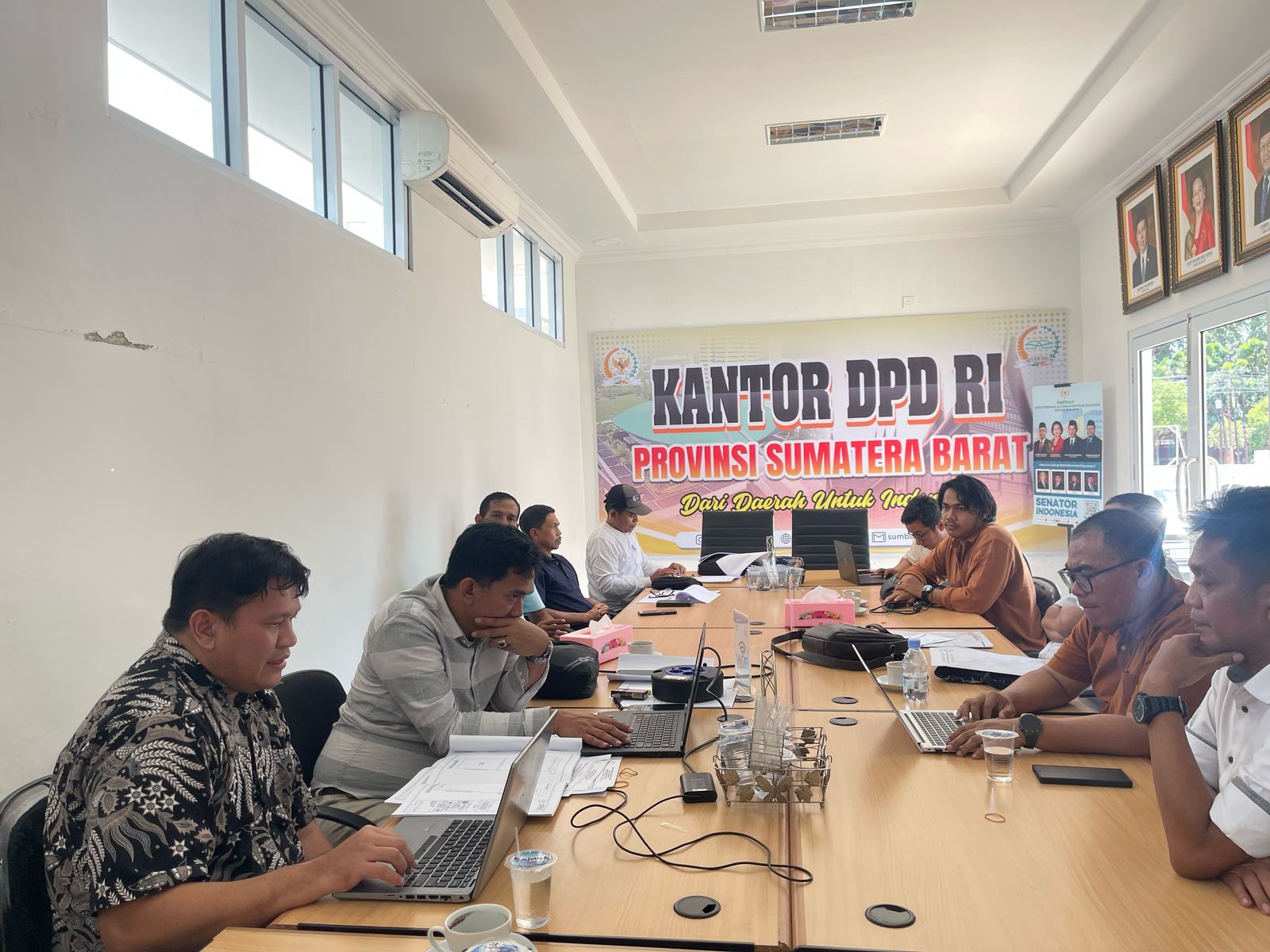 Kepala Kantor DPD RI Provinsi Sumatera Barat Erdia Nova, S.Sos., MM, Kasubbag Perencanaan dan Keuangan Andri Matovani, S.S., M.Si beserta staf menerima Kunjungan BPK RI didampingi Inspektorat dan Biro Umum DPD RI dalam rangka Pemeriksaan atas Laporan Keuangan DPD RI tahun 2024 pada DPD dan instansi terkait di Provinsi Sumatera Barat. BPK RI yang hadir dipimpin oleh Ketua Tim Nurul Hudayani, Anggota tim Denny Kurnia, M. Ardiansyah, dan Anita Zahra. Pemeriksaan ini akan dilaksanakan dari tanggal 24 sampai 27 Februari 2025.