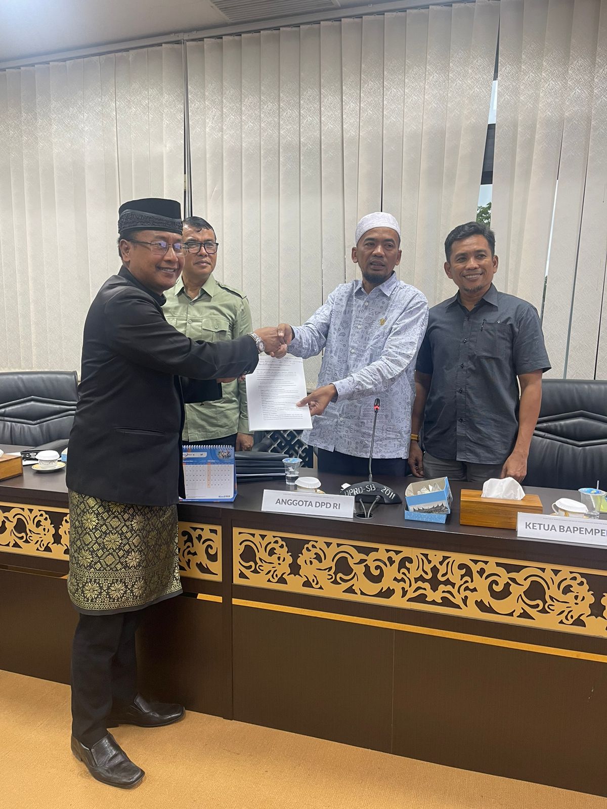Anggota DPD RI H. Jelita Donal Lc didampingi Kepala Kantor Kantor Erdia Nova, S.Sos., MM dan Kasubbag Andri Matovani, S.S., M.Si melakukan kunjungan kerja ke DPRD Provinsi Sumatera Barat dalam rangka Pemantauan Rancangan Peraturan Daerah dan Peraturan Daerah terkait Tata Kelola Pemerintah Desa.