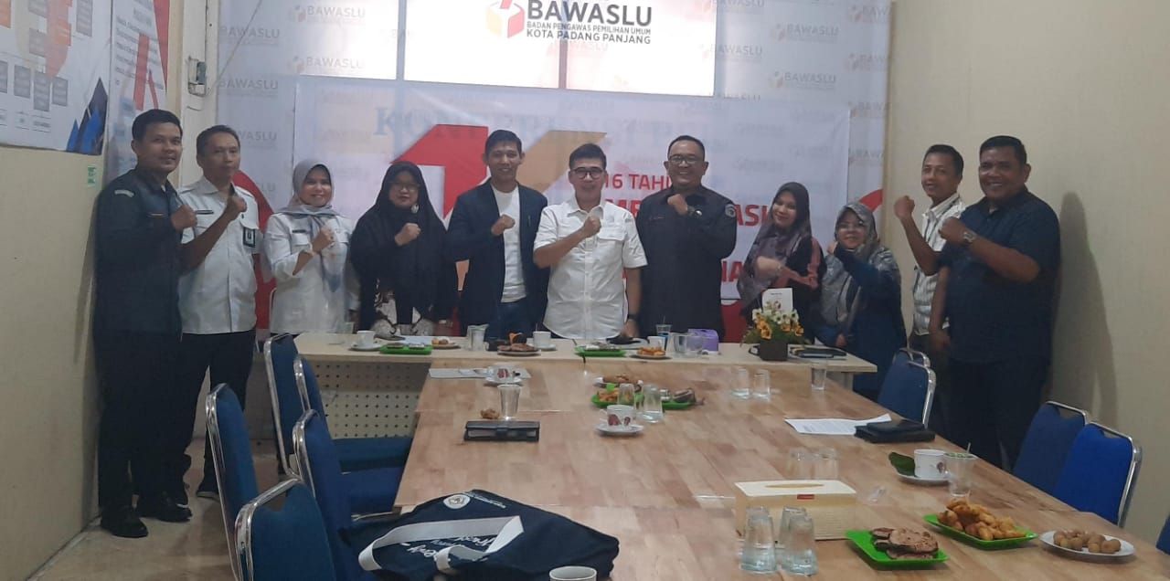 Kunjungan Kerja ini disambut langsung oleh Ketua Bawaslu Bapak Hidayatul Fajri, S. IP, Koord Sekretariat Zulhairi, M. Pd, Bendahara Novlinda, M. M dan beberapa anggota Bawaslu Kota Padang Panjang.