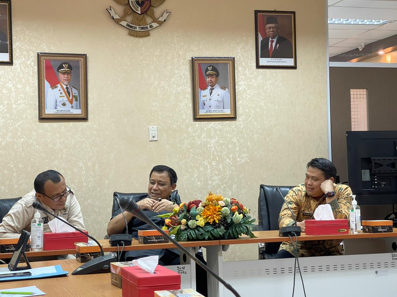 Padang, 15 Desember 2022. Kunjungan Kerja Bapak H.Muslim M. Yatim, Lc., MM (Anggota DPD RI) ke Badan Pendapatan Daerah (Bapenda) Provinsi Sumatera Barat, membahas tentang Tindak Lanjut Daerah Dalam Penyusunan Pajak Daerah dan Retribusi Daerah Pasca Berlakunya UU KHPD. Kedatangan Bapak Muslim disambut langsung oleh Bapak Maswar Dedi AP., M.Si Selaku Kepala Bapenda Provinsi Sumatera Barat.