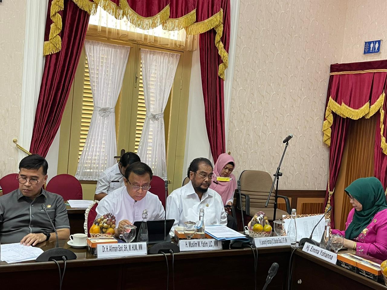 Kunjungan Empat Senator Asal Sumatera Barat Hj. Emma Yohanna, H. Muslim M. Yatim, Lc., MM, Dr. H. Alirman Sori, SH., M.Hum., MM, H. Leonardy Harmainy Dt. Bandaro Basa S.IP., MH. ke Provinsi Sumatera Barat. Dalam Kunjungan tersebut membahas tentang Pemantauan dan Peninjauan Pelaksanaan :