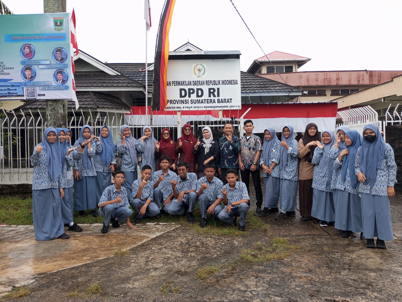 Kepala Kantor DPD RI Provinsi Sumatera Barat Ibu Erdia Nova. S.Sos, MM. menerima kunjungan siswa SMAN 8 Padang dalam rangka belajar lapangan mengenal lansung lembaga DPD RI dan Anggota DPD RI. para siswa didampingi langsung oleh Kepala Sekolah Bapak Zahroni, M.Pd, wakil kepala sekolah dan beberapa guru SMAN 8 Padang.