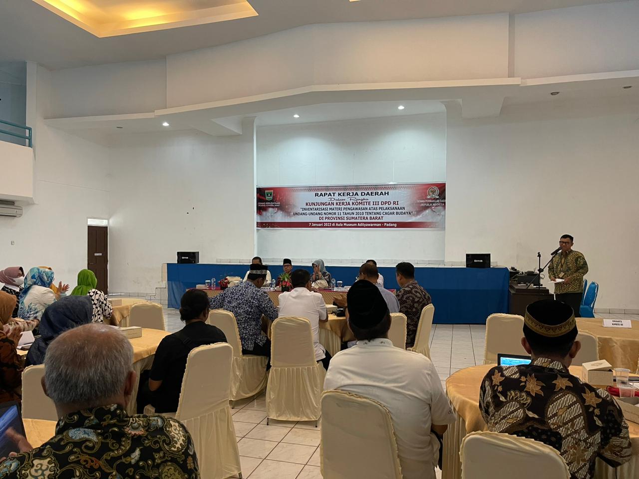 Rapat Kerja Daerah Komite III DPD RI Bersama Museum Cagar Budaya Adityawarman Provinsi Sumatera Barat, terkait Inventarisasi Materi Pengawasan Atas Pelakanaan Undang-Undang Nomor 11 Tahun 2010 Tentang Cagar Budaya.