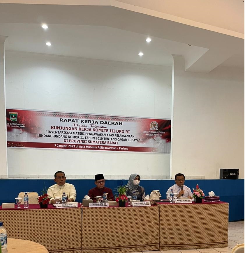 Padang, 7 Januari 2023 Rapat Kerja Daerah Komite III DPD RI Bersama Museum Cagar Budaya Adityawarman Provinsi Sumatera Barat, terkait Inventarisasi Materi Pengawasan Atas Pelakanaan Undang-Undang Nomor 11 Tahun 2010 Tentang Cagar Budaya.