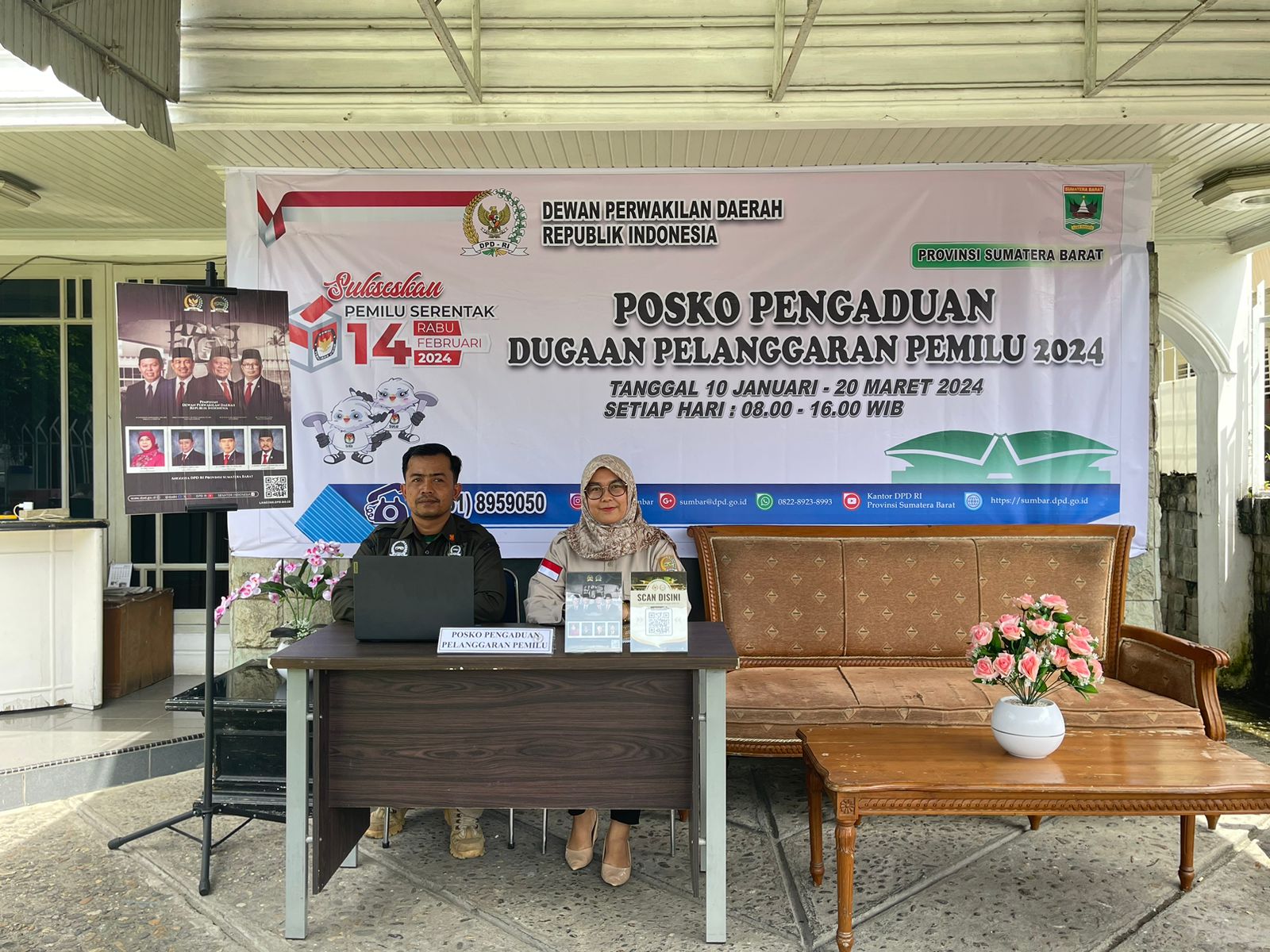 Padang, 10 Januari 2024 Kantor DPD RI Provinsi Sumatera Barat membuka Posko Pengaduan Dugaan Pelanggaran Pemilu 2024 yang terbuka untuk umum yang akan mulai bekerja efektif dari tanggal 10 Januari hingga 20 Maret 2024 pukul 08.00 s/d 16.00 WIB.